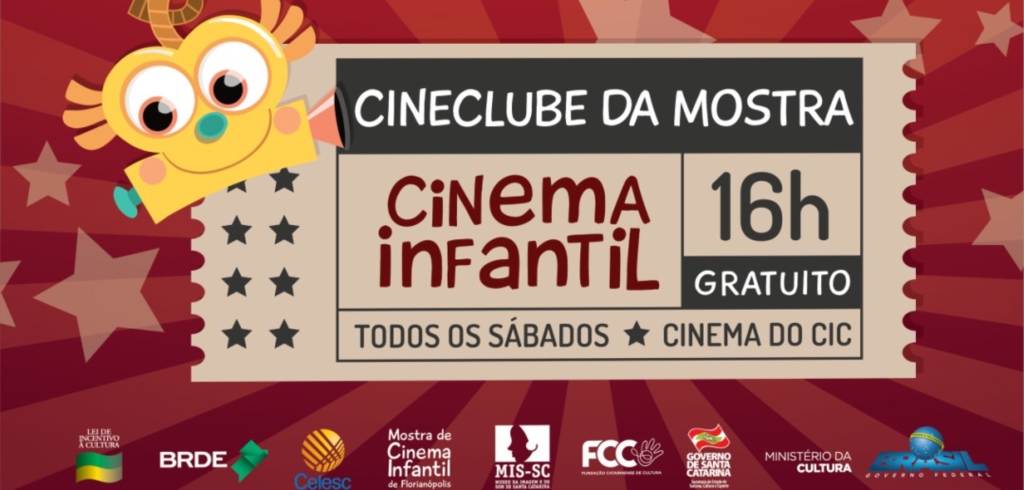 cineclube-cinema-2019As sessões acontecerão sempre aos sábados às 16hs, no Cinema do CIC, Florianópolis, gratuitamente! O Cineclube tem como objetivo exibir os filmes que fizeram sucesso com as crianças em todos os anos da Mostra de Cinema Infantil de Florianópolis. Visando a democratização do acervo, o Cineclube é a oportunidade de proporcionar para as crianças da cidade cinema de qualidade o ano inteiro.