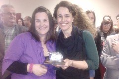 Na foto, Luiza Lins, diretora da Mostra (à direita) e Sofia Mafalda, do Cineclube Ieda Beck, recebem o Prêmio Franklin Cascaes de Cultura 2010.