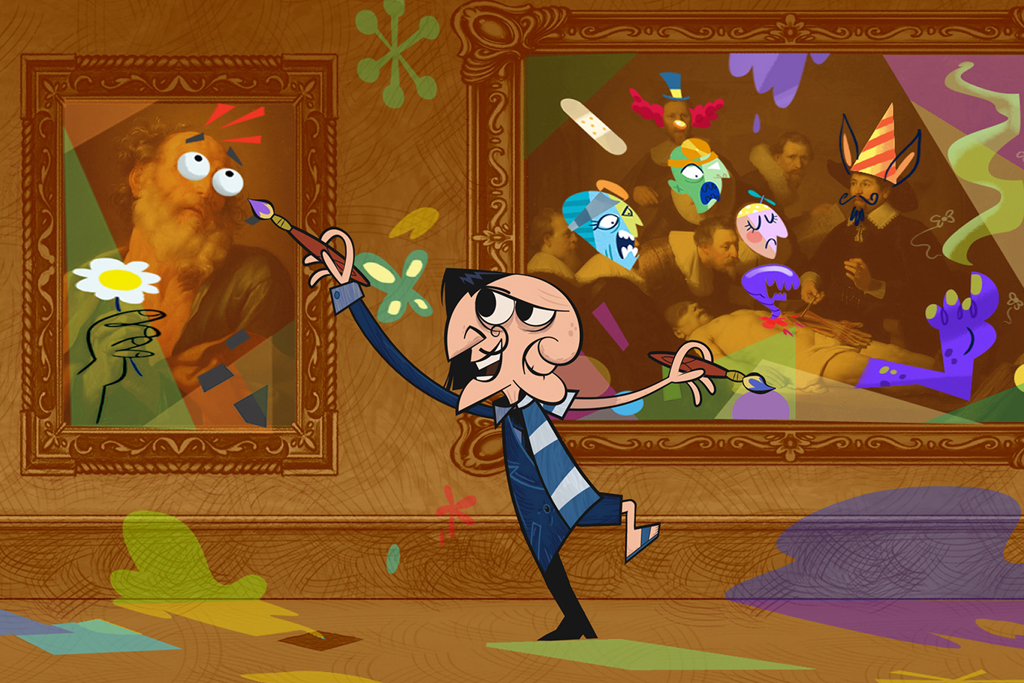 Um quadro inédito, o encontro de dois gênios em uma única pintura, chega ao museu numa noite chuvosa. O zelador observa a obra sendo levada ao salão onde será exposta ao público. A caixa molhada pinga sobre a pintura, amolece a tinta e liberta os pintores, que saem pelo museu interferindo de forma cubista e surrealista nas obras.