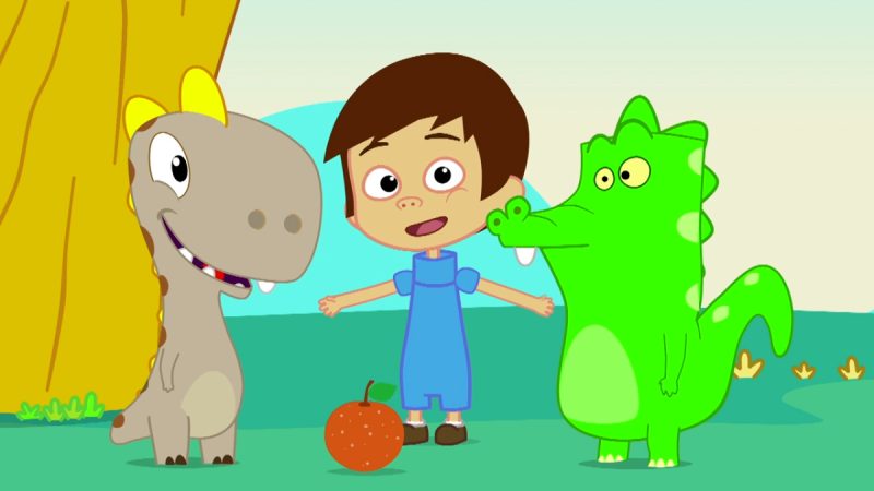 Um dinossauro e um crocodilo contam com a ajuda do inteligente e alegre menino Ding-Ding para entender o que é uma laranja.