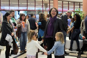 A Simone Fortes saiu de casa neste domingo, 2/7, para um programa que não poderia, segundo ela, deixar de fazer: vir para a Mostra de Cinema Infantil. No fim do dia, no momento do Palquinho, sua filha Lara, 7 anos, ainda tinha energia para dançar e seus amigos, que são seus vizinhos, observavam atentamente ao show do “No Dorso do Rinoceronte”.