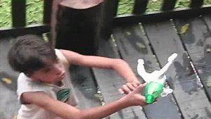 Uma brincadeira criativa que demonstra a destinação correta de materiais.